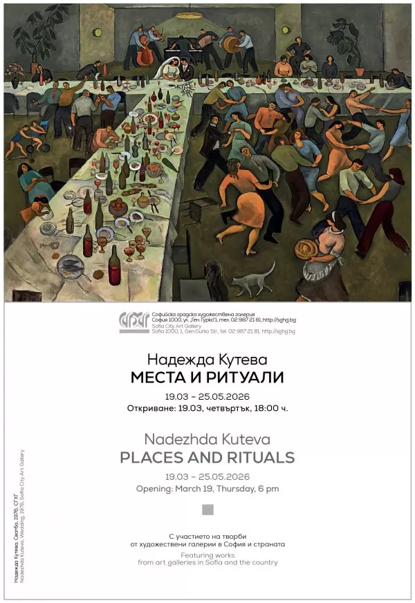 Изложба, наречена „Места и ритуали“, на известната живописка Надежда Кутева се открива в Софийската градска художествена галерия в четвъртък, 19 март, от 18.00 часа. Експозицията проследява развитието на основните насоки в работата на Надежда Кутева от нейното дипломиране в Художествената гимназия през 1964 г. до най-новите ѝ произведения.