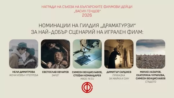 Номинации на гилдия "Драматурзи" за най-добър сценарий на игрален филм: Нели Димитрова - "Жени извън употреба", Димитър Сарджев - "Приказка за майка и син", Милко Лазаров, Екатерина Чурилова, Симеон Венциславов - "Стадото", Симеон Венциславов и Стефан Командарев - Made in EU, Светослав Овчаров - "Залог".