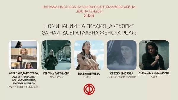 Номинации на гилдия "Актьори" за най-добра главна женска роля: Александра Костова, Албена Павлова, Елена Атанасова и Силвия Лулчева - "Жени извън употреба", Весела Вълчева - "Стадото", Гергана Плетньова - Made in EU, Снежанка Михайлова - "Лъст", Стефка Янорова - "3.0 килограма щастие".