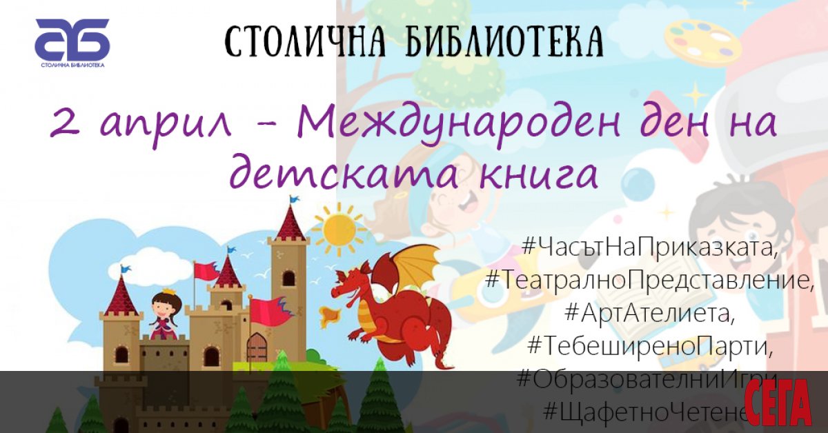 Библиотеката на София кани всички малчугани, които обичат да четат, и техните родители да отпразнуват заедно Международния ден на детската книга във вторник. Този празник се отбелязва в цял свят неслучайно на тази дата – 2 април е рожденият ден на великия датски разказвач на приказки Ханс Кристиан Андерсен.