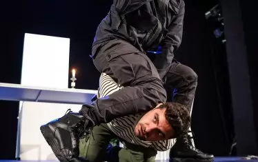 Пиесата е писана от Карбашлиев специално за актьорския дует на Алек Алексиев и Стоян Дойчев, особената химия между които си пролича първо на кино във филма на Виктор Божинов „Възвишение“. И на сцената екранните Гичо и Асенчо са много добра комбинация: Алексиев – по-„академичен“ и изразителен, Дойчев – по делнично нехаен и до крайност естествен. В моментите на ретроспекция, когато се повдига завесата над случилото се някога, освен „сенки“ актьорите разиграват и куклена миниатюра. Например за да обяснят пиянството на бащата с лъжата, с която той на своето време се е сблъсквал навсякъде около себе си – ужасно клише (каквито в текста има немалко – и в диалога, и в ситуациите), спасено от режисьорката в по-абстрактен ключ с помощта на куклите на Рада Петрова-Андонова. Баналностите в „разказа за истината и нейното отсъствие“ донякъде изкупват неочакваната развръзка и ироничният финал – може би първа мъничка стъпка към сбъдване на прогнозата на по-големия брат: че неволите на другия са всъщност дарове на съдбата, които ще го изведат към ново начало…