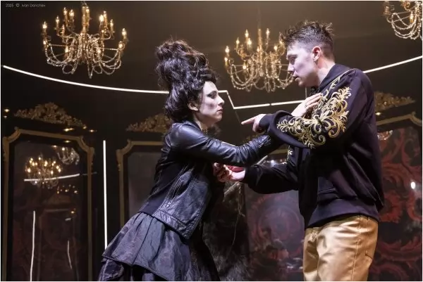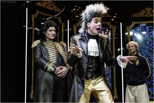 Отличният Богдан Бухалов е напълно правдоподобен Петър III – налудничав, разлигавен до гротеска, безцеремонен с жена си и…свикнал да нарича половите органи с истинските им имена (да, езикът в специално направения за спектакъла превод на Любов Костова наистина никак не си поплюва). На обичайното си високо ниво е Леонид Йовчев като граф Орлов, тук наричан Орло – първият фаворит на Екатерина, на когото тя казва „Хвърлила съм ти око!“, но намира в него не толкова партньор за леглото, колкото…брат за преврат. Първите уроци по прелъстяване и политика бъдещата Велика получава от своята френска прислужница Мариел – интересно превъплъщение на Каталин Старейшинска. Христина Джурова и Александър Карасански са Натали и Диди – дъщерята и синът на Екатерина, първата с тенденция да обърне страната към православните ценности за сметка на светските, вторият – очевидно увлечен по празния живот и лова, съответно смятани от майка им за неподходящи да продължат делото й. Младият Александър Кендеров е очарователният Хермес, неизживяната напълно любов на императрицата, който се връща в живота на дъщеря й като Вал… С роли в антуража са още Свежен Младенов, Стоян Младенов, Георги Кацарски.
