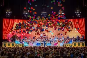 Андре Рийо идва в София с изцяло нова програма, но - както винаги - с 60-членния си оркестър "Йохан Щраус", хор и солисти от различни националности. Репертоарът им се простира от класически музикални шедьоври до валсове, музика от филми, поп хитове и опера. Гост солист този път ще бъде 15-годишната Ема Кок. Тя е победител във Voice Kids - Холандия и в шоуто за таланти Ministars с изпълнението си на песента Voilа на Барбара Прави, прочула се с над 60 милиона гледания в социалните мрежи.