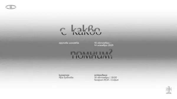 Институтът за съвременно изкуство – София, представя груповата изложба "С какво помним?", чийто куратор е неговата съоснователка и доскорошен директор на Националната галерия, изкуствоведът Яра Бубнова. Участници в експозицията са неколцина от най-изявените съвременни български визуални артисти: Лъчезар Бояджиев, Правдолюб Иванов, Мартин Пенев, Недко Солаков и Красимир Терзиев. Вернисажът за откриването е на 16 октомври, четвъртък, от 18.00 до 20.00 часа в галерията на ИСИ на бул. "Васил Левски" 134 в столицата (вход откъм ул. "Екзарх Йосиф"), където произведенията могат да бъдат видени до 14 ноември.