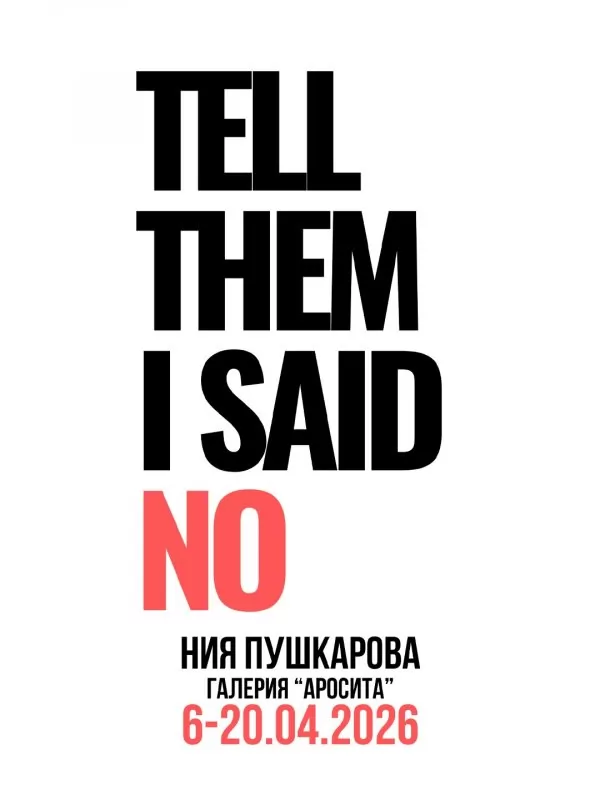 Самостоятелна изложба, наречена „Кажи им, че отказвам“, на художничката Ния Пушкарова отваря врати утре, 6 април, от 18.30 часа в столичната галерия „Аросита“ на ул. „Врабча“ 12Б. Изложбата разработва идеята за отказа като лична и етична позиция. Чрез фотографии, рисунки и фрагменти от своя собствен визуален архив Ния Пушкарова разсъждава върху тишината, съпротивата и решението да не участва в системи, движени от агресия, суета и морална празнота.