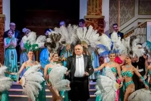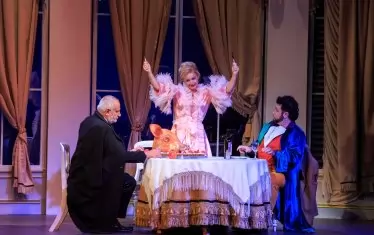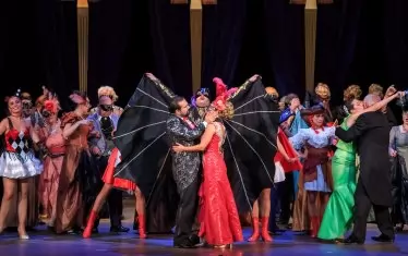 С премиера на една от най-поставяните не само в Европа, но и извън континента оперети стартира миналата седмица новият сезон в Музикалния театър. Става дума за "Прилепът" от Йохан Щраус-син, а сценичната версия се явява професионален режисьорски дебют на директорката на театъра Марияна Арсенова. "Това е нов прочит на вечната класика с шеговити препратки към съвремието. Стремим се да привлечем младата публика, за да й покажем неувяхващата красота на нашето изкуство", уточнява тя. В думите й се убеждаваме още с вдигането на завесата, когато виждаме слугините да се дуелират, въоръжени с пухчета за бърсане на прах, или пък ухажорът на господарката Розалинда (Добрина Икономова, Олга Динова) да изскача от гардероба й като кукувичка от часовник.
