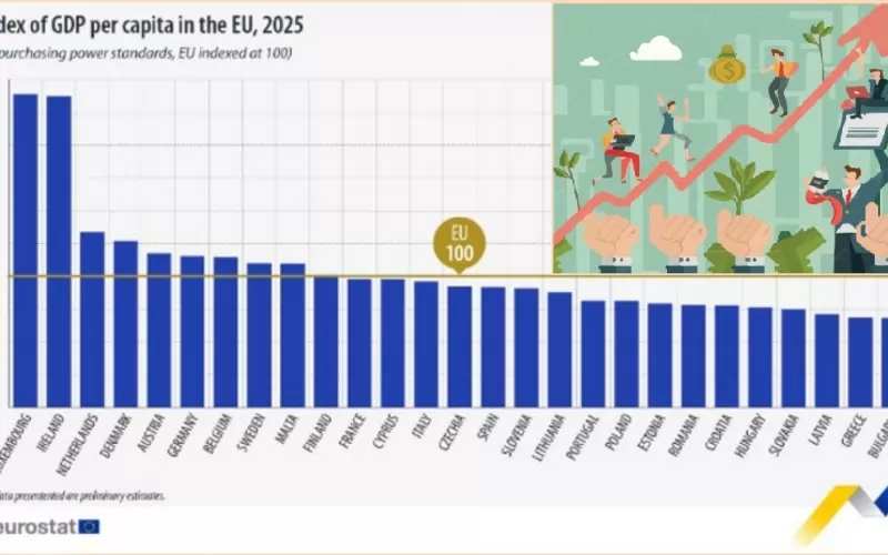 Именно това сочат данните на Евростат за 2025 г. - България, Гърция и Латвия са на дъното в ЕС по показателя "брутен вътрешен продукт на човек" с отчитане на покупателната способност. Прави впечатление класирането на Румъния, която вече е изпреварила не само нашата тройка, но и Унгария, Словакия и Хърватия. Испания, която според Георги Ангелов може да настигнем през идното десетилетие, е малко под средното за ЕС, също като Чехия и Словения.