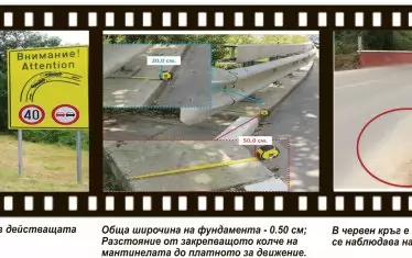 Експертите от института твърдят, че преди злополучния ремонт на тази отсечка не е имало знаци за ограничаване на скоростта - явно не е било нужно. Те установили още, че има разлики в трасето на пътя преди и след рехабилитацията. А когато след ремонта сигналите и оплакванията зачестили, пътната агенция монтирала странно пано в сигнално жълто и комбинация от знаци. Там е сложено и ограничението на скоростта до 40 км/ч, след като пътната агенция пет пъти безуспешно молила "Трейс Своге" да оправи дефектите.