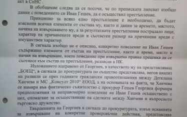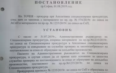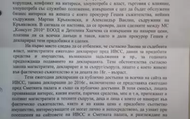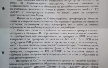 Апелативната спецпрокуратура стига до извода, че "в материалите по преписката липсват каквито и да е данни или индикация Иван Гешев да е използвал служебното си положение при формиране продажните цени на закупените от Детелина Ханчева недвижими имоти". "Липсват също така данни Гешев и Ваклин да поддържат отношения, дори и това да бе така, не следва извод, че Иван Гешев е осъществил състав на престъпление предвид факта, че Ваклин е свидетел по досъдебно производство", пише още в постановлението си прокурор Илиян Точев.