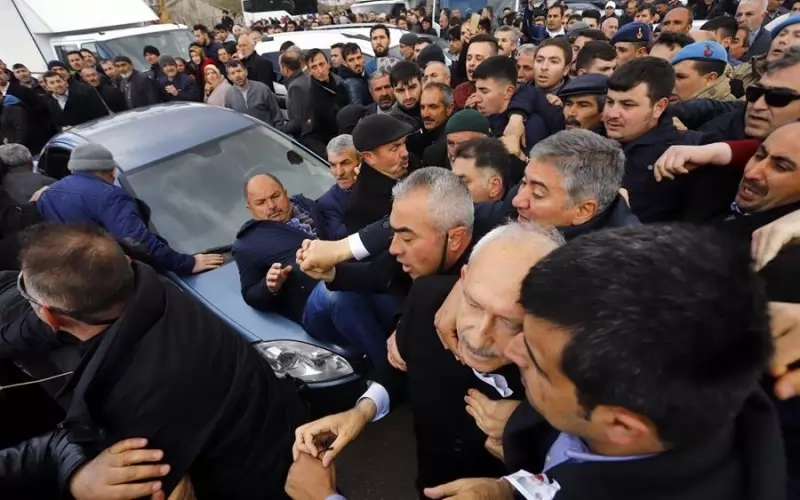 Турската полиция арестува 6-има души, включително член на управляващата партия, след нападение срещу лидера на опозицията Кемал Кълъчдароглу, съобщиха местни медии. 70-годишният депутат от Народно-републиканската партия бе ударен по главата в неделя, докато заедно с десетки хора бе на погребение в Анкара на убит войник, загинал в операция срещу кюрдски бунтовници. Кълъчдароглу не е пострадал сериозно. Той бе изведен от тълпата, събрала се на погребението, и откаран незабавно с бронирана кола на безопасно място.