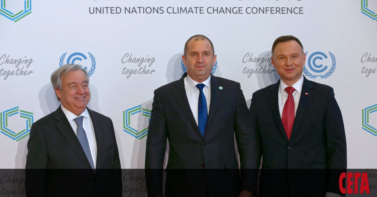 "България продължава да работи с всички партньори в областта на климатичните промени за пълно прилагане на Парижкото споразумение, но по-нататъшна ревизия или увеличаване на амбицията за намаляване на емисиите на парникови газове обаче не съответства на нашите национални интереси", заяви президентът Румен Радев пред участниците в конференцията. "Ние разглеждаме социалния аспект като фактор от първостепенна важност за запазването на хиляди работни места. Ние сме на път да преизпълним целта от намаляване на емисиите с 20% за 2020 г. в сравнение с 1990 г.", посочи президентът. Той отбеляза, че през 2016 г. емисиите на парникови газове в България са намалели с 49 на сто в сравнение с базовата 1988 г. и с 4.4 на сто в сравнение с предходната 2015 г. Очаква се на срещата да бъде поставен въпросът за прекратяване на добива на твърди изкопаеми в ЕС като мярка за ограничаване на глобалното затопляне. Такъв призив за прекратяване на добива на въглища отправи австрийският президент Александър ван дер Белен. Българският му колега Румен Радев вече обяви, че не подкрепя подобна мярка.