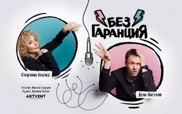 Можете ли да предположите колко думи използва ежедневно мъжът при рутинното си общуване с другия пол? Около 750. А жената? Над 8250, като повечето са подчинени на въпроса „Защо?“, а останалите кореспондират с „Кога?“. Твърдят го създателите на шеметния спектакъл „Без гаранция“ – актьорите Стефания Колева и Деян Ангелов-Додо, както и драматургът-режисьор Николай Гундеров, който описва и поставя на сцена техните (почти) напълно лични истории. Но зрителите, които „дебютират“ с представлението, не са запознати с тези цифри и всеки път от салона започва наддаване…