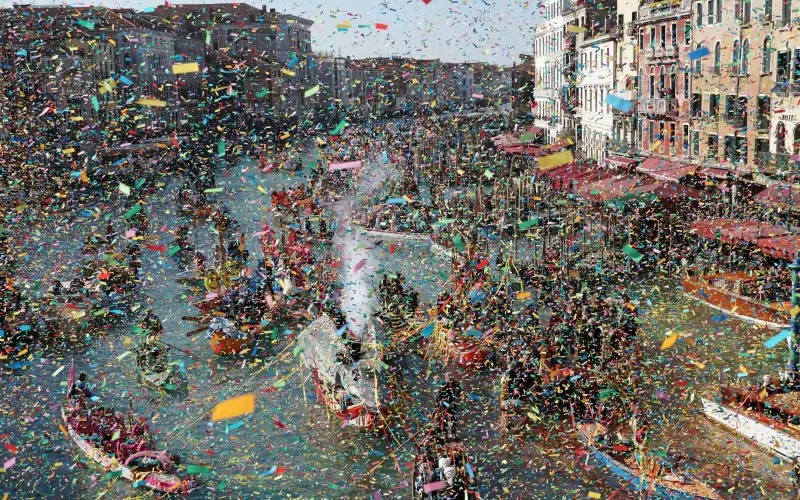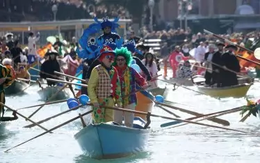 Така водното шествие по Канале гранде с повече от 100 карнавални лодки, което завърши пред моста Риалто, бе ознаменувано с пъстроцветни гирлянди и конфети – всички напълно биоразградими, съобщи АП.