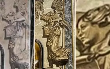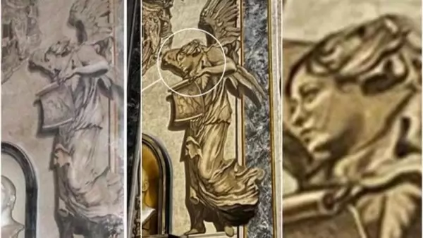 След приключване на реставрационните дейности в римската базилика „Сан Лоренцо ин Лучина“ посетителите открили, че един от херувимите на фреската е станал поразително подобен на министър-председателя на Италия Джорджа Мелони.