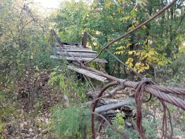 Човек на гарата ме измерва от глава до пети. "Здрасти. Абе тук имало един въжен мост, знаеш ли къде е?", стрелвам го. Не знае. И да ме бе упътил, нямаше да послушам. Камиони карат баластра, шофьорите ми махат - ясно, свои сме си.