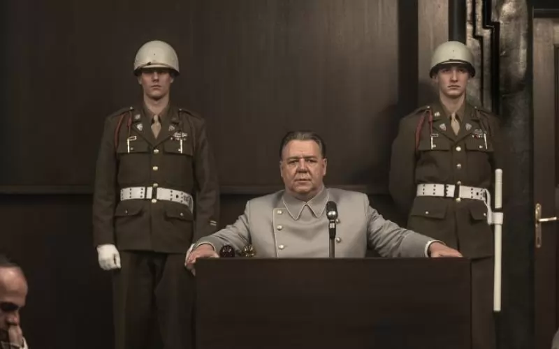 Единствените персонажи, на които се позволява известна морална амбивалентност, са двамата титуляри, изиграни от носителите на "Оскар" Ръсел Кроу и Рами Малек. За 60-годишния бивш гладиатор, изпаднал от първа лига на Холивуд заради неособено блестящата си физическа форма, "Нюрнберг" е рядък шанс да получи поле за изява в драматичния жанр и гарантирани номинации в предстоящия награден сезон. Кроу е все така великолепен, приковаващ окото на камерата и зрителите в залата актьор, който привидно без усилие изгражда многостранен портрет на Херман Гьоринг – втория по важност човек в нацистка Германия след Хитлер. Магнетичното му изпълнение не цели да накара публиката да симпатизира на райсмаршала, извършвал и одобрявал най-отвратителни деяния, но добре защитава тезата за "баналността на злото", описана от Хана Аренд в "Айхман в Йерусалим" близо две десетилетия по-късно. Обаятелен събеседник и страдащ за семейството си баща в килията, той демонстрира нарцисизъм, арогантност и пълно отсъствие на емпатия на съдебната скамейка.
