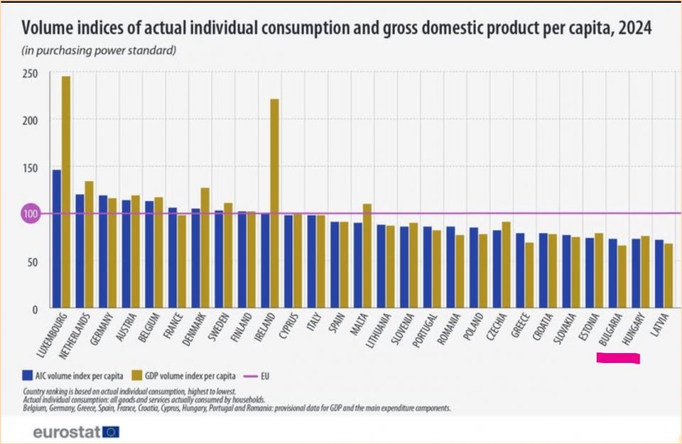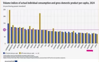 Преди Коледа Евростат публикува изследване за материалното състояние на домакинствата в ЕС през 2024 г. Унгария се оказа предпоследна по индивидуално потребление, по-зле от Българ