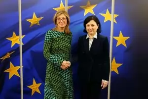 * Вера Йоурова e заместник-председател на Европейската комисия, отговарящ за ценностите и прозрачността. Тиери Бретон е европейски комисар по въпросите на вътрешния пазар.