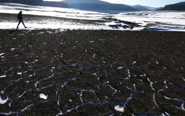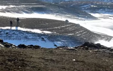 В пресъхналото гигантско дъно се мярка улей, наподобяващ малък воден канал, който криволичи и някъде в далечината се влива в нещо като езеро, което днес по размери е по-малко от езерото в столичния квартал "Дружба". По бреговете на рекичката, наближавайки езерото, заснежената настилка започва да променя вида си. Буквално земята пропада. От засушаването в почвата са се образували огромни пукнатини, които сега са запълнени от сняг.