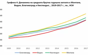 на домакинствата. А Видин е особено зле - годишният доход е средно 3500 лева на човек през 2017 г. на фона на 4500-5000 лева за останалите три. Това се дължи най-вече на големия дял на доходите от пенсии и на ниския дял на доходите от работна заплата във Видин.