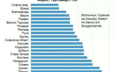 Делът на работните места в столицата и в Пловдив се разширява значително - близо една трета от наетите лица през 2017 г. са концентрирани в София-град, а около една десета - в област Пловдив. Неслучайно общият доход на наетите, отчитащ както повишението на заплатите, така и създадените работни места, се увеличава най-осезаемо именно в тези две области на страната. Други области с двуцифрен ръст на дохода от труд са Габрово, Ямбол, Софийска област, Бургас и Разград. Най-незабележимо - с под 1% годишно, нараства доходът, който са получили наетите в областите Силистра и Добрич. А във Видин трудовият доход дори се свива през изминалата година.