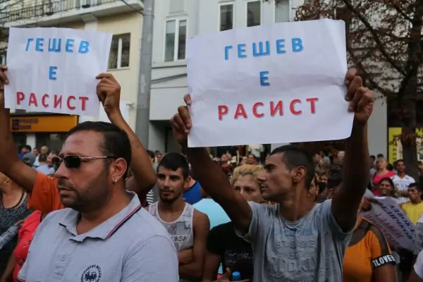 Една част от ромите носеха плакати "Гешев е расист" като препратка за изказването на зам.главния прокурор "Лъже като циганин". Ромите обаче не бяха много ориентирани за какво са на събитието - част от тях обясняваха, че подкрепят "прокурора", а други - че на плакатите им пише "Гешев е радост". Други чистосърдечно си признаваха, че са им платили по 20 лв., за да дойдат, и са им казали, че са "против прокурора", чието име не помнеха.