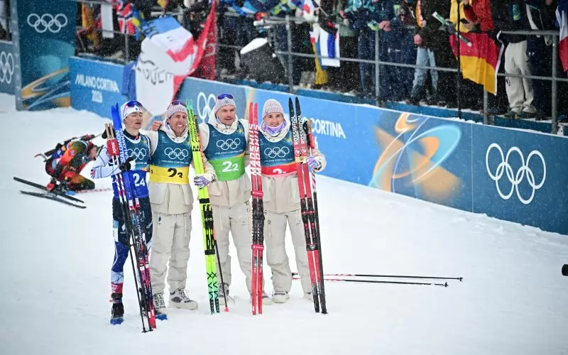 Историческа първа олимпийска титла в мъжката щафета на биатлона спечели тимът на Франция. В състав Фабиен Клод, Емилиен Жаклен, Кентен Фийон Майе и Ерик Перо, "петлите" изминаха най-бързо 30-километровата дистанция, въпреки че направиха и една наказателна обиколка от 150 метра - за 1:19:55,2 ч.
