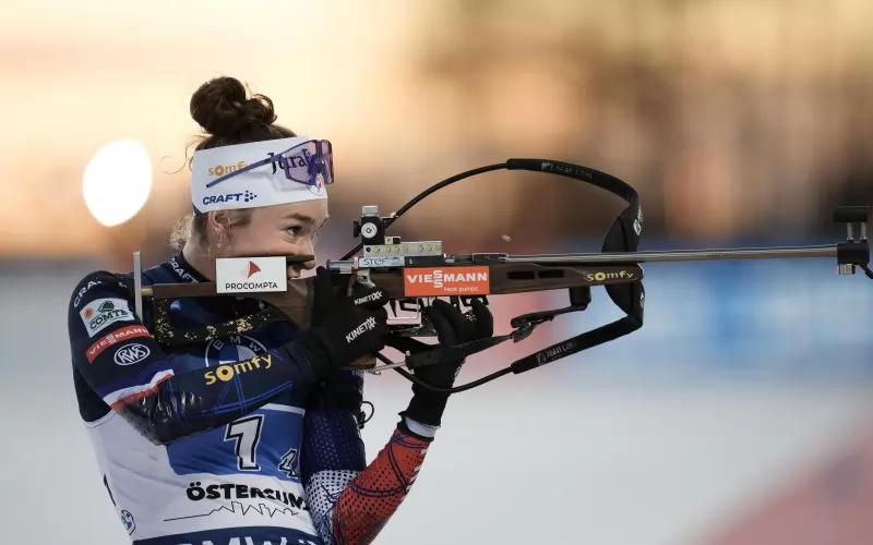 Щафетата на Франция (Ришар, Мишелон, Бреза-Буше, Жанмоно) направи общо 8 грешни изстрела, но компенсира с допълнителни патрони и не трябваше да върти наказателни обиколки, като в крайна сметка затвори състезанието с време 1:11:17.9 мин.
