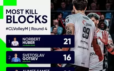 В класацията за най-много успешни блокади пък капитанът на "сините" Светослав Гоцев заема второ място, въпреки че пропусна един мач заради травма. Центърът завърши груповата фаза с 16 блока. Повече от него има само полският национал Норберт Хубер от "Ястжембски Венгиел" с 21.