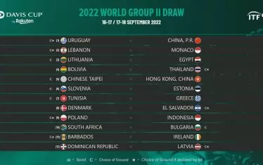 България ще бъде домакин на Южна Африка в мача от Световна група II на тенис турнира за Купа "Дейвис". Това отреди изтегленият преди минути жребий за второто ниво на световното отборно първенство за мъже. Мачовете в него ще се проведат в периода 16-18 септември 2022 г.