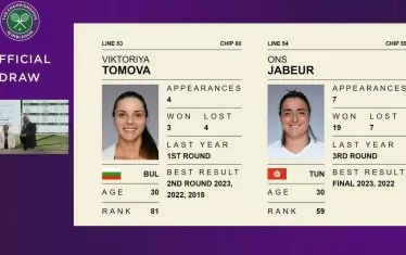 Виктория Томова нямаше късмет в жребия и в I кръг ще играе срещу двукратна вицешампионка на "Уимбълдън" - Онс Жабьор. Освен двата финала в Лондон през 2022 и 2023 г. тунизийката има и още един загубен мач за титла от Големия шлем - на US Open през 2022 г.