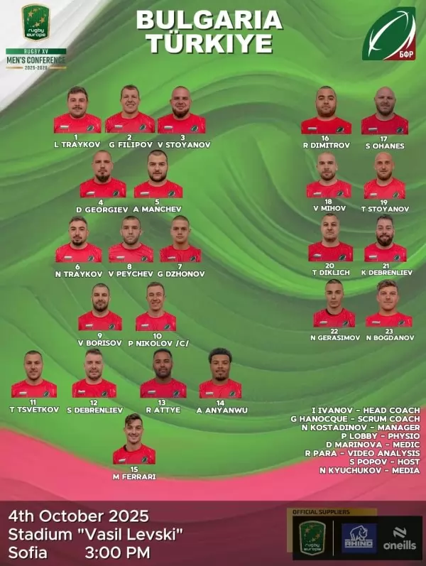 Ръгбистите ни обаче имат и още стимули да търсят непременна победа над Турция. Така ще бъде запазена 100-процентовата успеваемост в домакинствата ни на Националния стадион от май 2022 г. насам с победи до момента над Турция (54:13 и 40:24), Израел (34:15), Словения (39:19), Сърбия (30:7) и Молдова (18:17). Отделно и ще търсим реванш за тежката загуба с 10:49 при гостуването на турска земя на 5 октомври 2024 г.