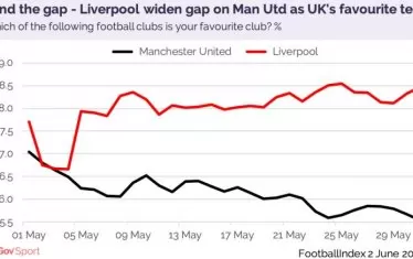8,3% от анкетираните са посочили мърсисайдци като отговор на въпроса "Кой е любимият ви футболен отбор?". Така "червените" от "Анфилд" изпреварват своя най-голям исторически съперник и дългогодишен №1 сред феновете "Манчестър Юнайтед", който сега е втори с 6,0% подкрепа. Челната тройка по популярност на Острова допълва "Челси" с 3,1%.