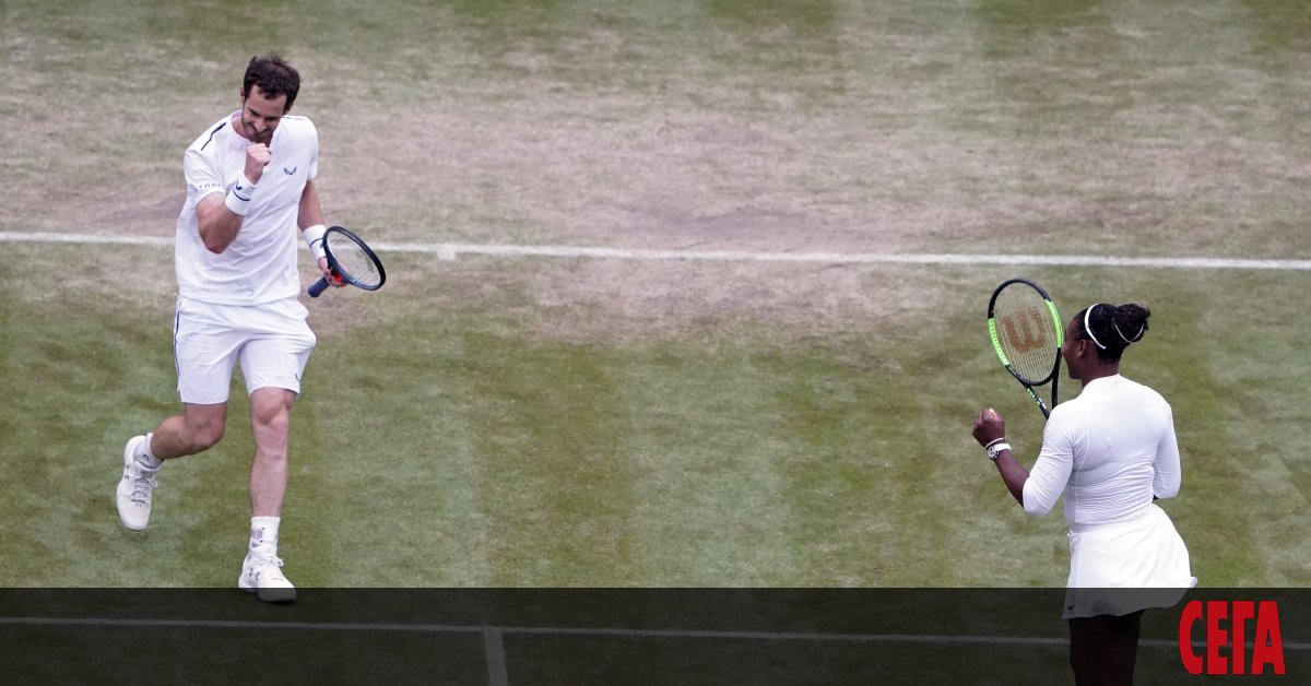Анди Мъри и Серена Уилямс ликуват след последната точка в мача срещу Фабрис Мартен (Фр) и Ракел Атауо (САЩ) от II кръг на турнира при смесените двойки на "Уимбълдън". Шотландецът и американката се наложиха със 7:5, 6:3 и се класираха за 1/8-финал във втория за годината турнир от Големия шлем. Снощи техни съперници бяха поставените под №1 Бруно Соареш (Браз)/Никол Меличар (САЩ).