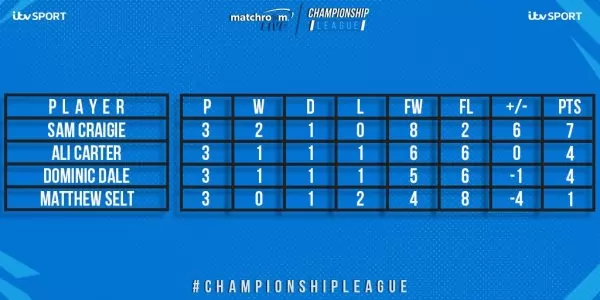 По-младият от двамата англичани - Крейги (26 г.), спечели битката в група 6 с впечатляващо представяне срещу трима ветерани. Той постигна разгромни победи с по 3:0 фрейма срещу Матю Селт и Доминик Дейл и завърши наравно 2:2 срещу фаворита Али Картър.