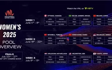 Догодина участниците във VNL за първи път се увеличават от 16 на 18. При мъжете новите тимове са Китай и Украйна, а при дамите - Чехия и Белгия. Според регламента във всяка от трите състезателни седмици всеки отбор ще играе по четири мача срещу различни съперници.