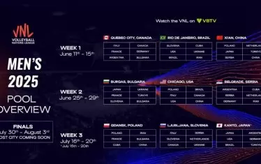 При мъжете България ще започне участието си в Квебек (11-15 юни), където ще бъдат също домакинът Канада, Италия, Франция, Германия и Аржентина. Третият турнир за нашите ще е в Гданск (16-20 юли) с домакина Полша, Иран, Франция, Куба и Китай. Финалите в Лигата на нациите за мъже през 2025 г. ще са между 30 юли и 3 август, а домакинът все още не е определен.