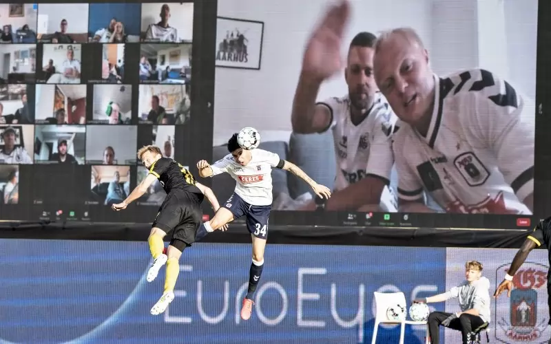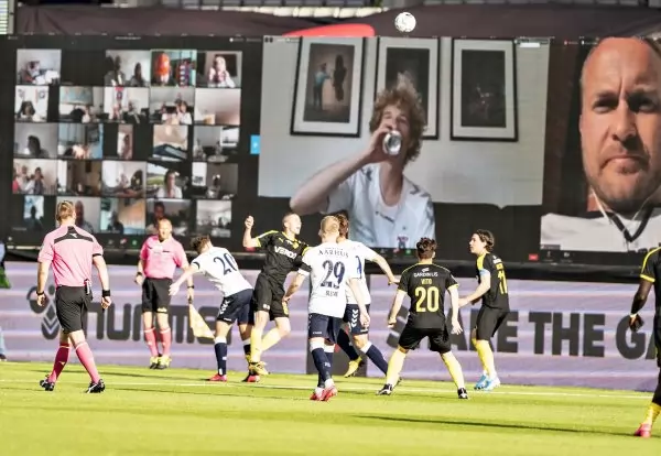 Датският "Орхус" може да се похвали, че събра 10 000 души "на трибуните" за първия си мач след подновяването на сезона. Клубът използва огромни видеостени, а феновете можеха да гледат мача от домовете си чрез платформата Zoom.