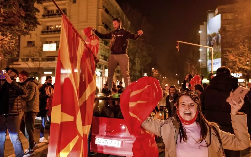 Футболните запалянковци в Скопие отпразнуваха подобаващо първото класиране на Северна Македония за европейско първенство.