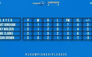 Двамата постигнаха еднакви резултати срещу другите двама противници в потока - победи с по 3:0 фрейма срещу Джейми Кларк (Уелс) и равенства по 2:2 срещу Джордан Браун (СИрл). Решаващ трябваше да бъде директният мач помежду им, в който обаче двамата си размениха по два фрейма и завършиха с по 5 т. в крайното класиране. Бингам стана №1 само заради по-добрия върхов брейк през деня - 94 т. срещу 89 т. на Уолдън.