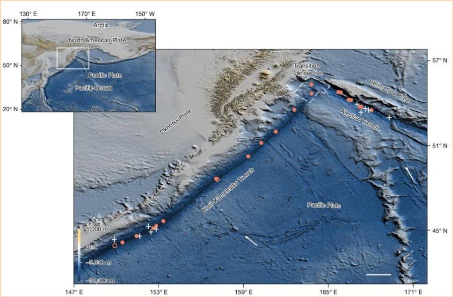 Между Русия и Аляска, в дълбоките води на Курило-Камчатския и Алеутския жлеб, миди, червеи и невидими микроби процъфтяват благодарение на газове, които излизат от пукнатини в морското дъно. Това са най-дълбоките екосистеми, захранвани от метан, регистрирани някога. И нещо по-важно - те не просто оцеляват и се размножават, а изглежда спомагат за регулирането на климата.