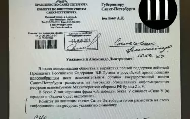 Латинското Z, наричано понякога "новата свастика" заради мрачната си символика, се превърна в тотем на руската пропаганда. След началото на военната интервенция буквата, изписана върху нахлуващите в Украйна танкове, се появи по сгради, върху автомобили, на трикото на руски спортист и дори върху маникюра на жените. В западните медии се появиха множество хипотези за значението на знака. В официална инструкция на министерството на отбраната се казва, че Z е съкращение от "Za победу", а V - от "сила V правде" (сила в истината) и "задача будеть выполнена" (задачата ще бъде изпълнена - б.р.).