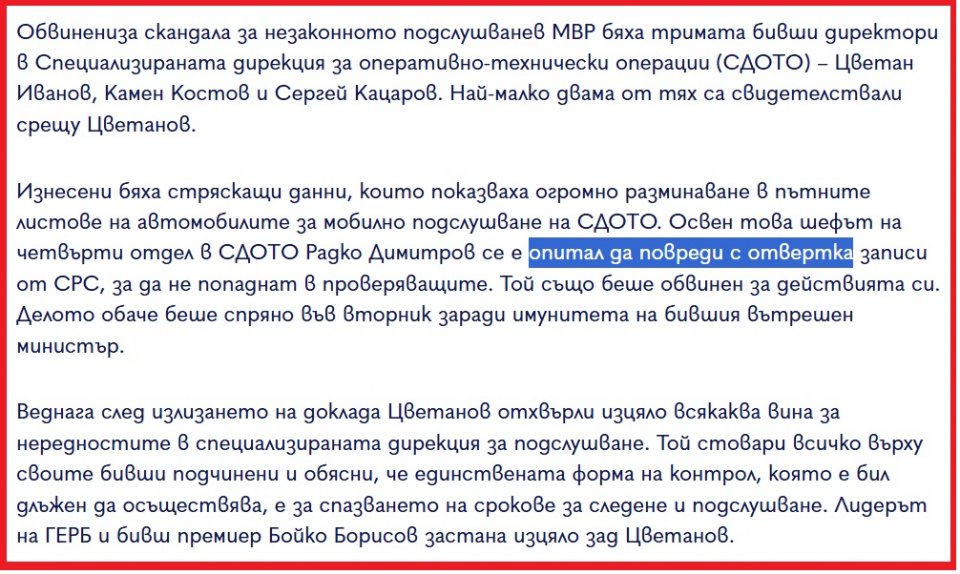 След това отклони темата към важността на отвертката като политически инструмент и се отнесе в спомени за една минала ера в ПКП-ГЕРБ, когато подчинен на някогашния гербав вътрешен министър въртеше отвертката като меча Ескалибур и поразяваше неправилни бази данни.