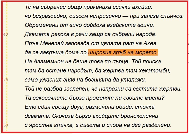 (Редакторът на тази публикация на "Одисеята" заслужава да му счупим една-две тояги в гърба, защото от прекомерно усърдие е счупил дактила, като е "поправил" архаичния глагол "жертвува" на съвременната форма "жертва" и с това е оплескал броя на сричките. Но това е друга болезнена тема.)