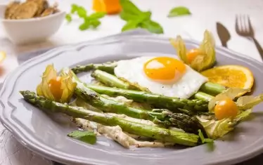 Продукти: 150 г аспержи, 3 яйца, 20 г масло, магданоз, сол.