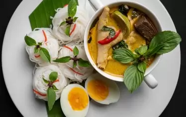 Кокосова супа с нудли и скариди