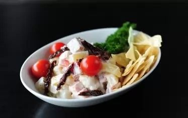 Лукът се нарязва на тънки ивички. Фурмите се нарязват на четвъртинки и се изчистват от костилките. Разбъркват се в купа и се поръсват последователно със зехтина, захарта, солта, канелата и лимоновия сок. Купата се покрива и се оставя за около час на студено. Поднася се с обезсолено овче сирене.