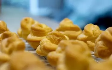 За еклерите: Млякото се загрява, прибавя се маслото и се поръсва със сол и захар. След като сместа заври, съдът се сваля от котлона. Изсипва се предварително пресятото брашно, като енергично се бърка. Прехвърля се в купа и се разбива постепенно с яйцата. Оформят се малки топчета и се пекат в намаслена тава на 200-220 градуса 15-20 мин.
