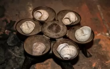 Почистените и измити охлюви се варят, изваждат се от черупките и се задушават в масло. Поръсват се със сол и черен пипер. Ситно нарязаният лук се запържва отделно, добавя се оризът, разбърква се няколко пъти и след няколко минути се залива с три части от бульона, в който са врели охлювите. След като оризът поеме течността, се смесва с охлювите. Ястието се разпределя в чаени чаши, предварително намазани отвътре с масло. Преди сервиране чашите се обръщат в чиниите.