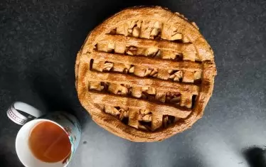 Продукти: 1 кг ябълки, 200 г грис, 150 г брашно, 200 г захар, 1 бакпулвер, половин ч.л. канела, 100 г масло.